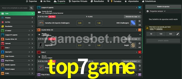 A aposta top7game oferece aos jogadores a experiência mais conveniente de apostas em eSports!